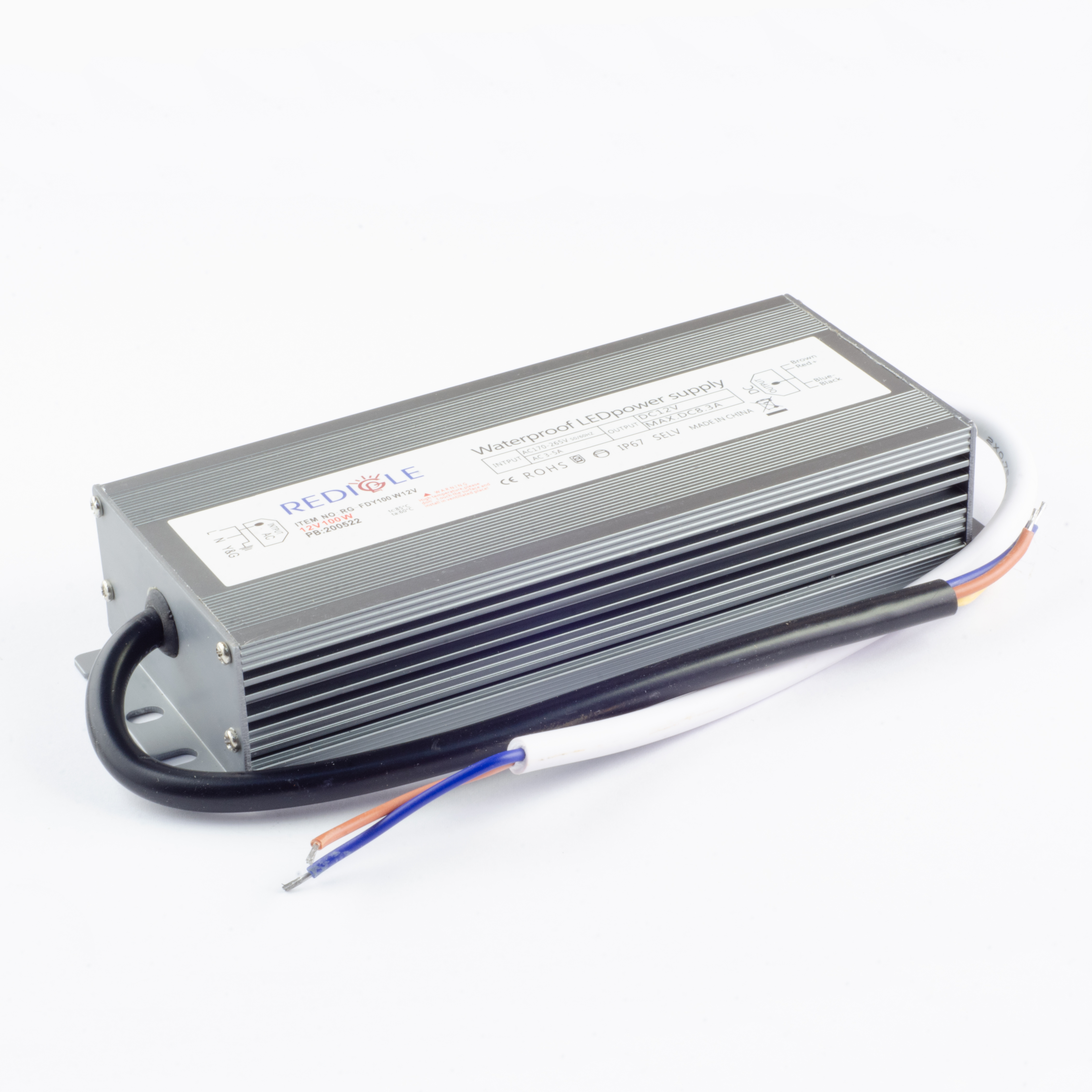 Блок питания AC 220В/DC 12В IP67 100Вт Металл 190х52х20мм REDIGLE (20)